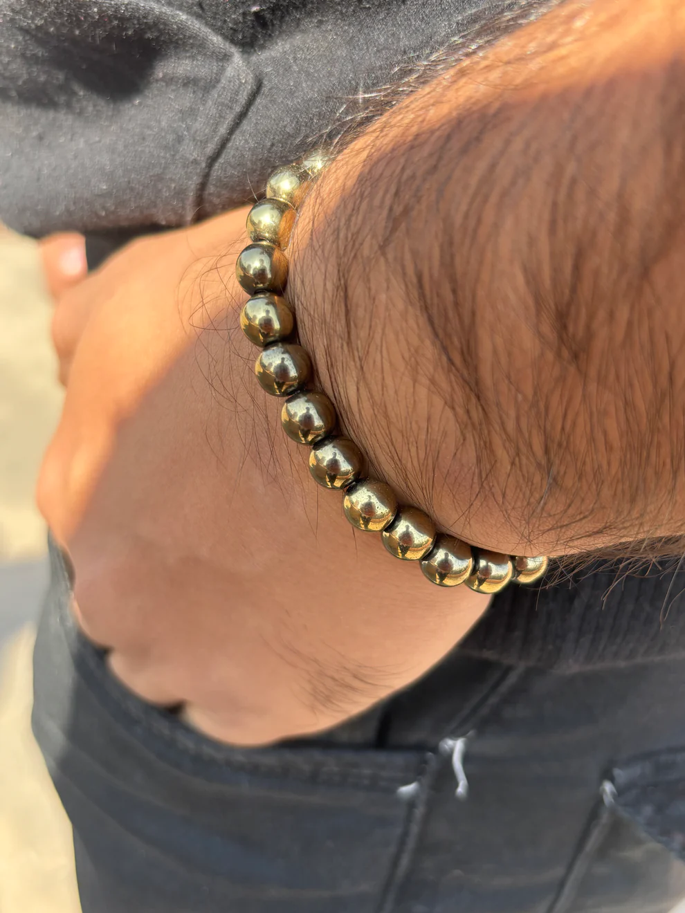 पाइराइट ब्रेसलेट मूल रूप से खनन किए गए कच्चे पाइराइट पत्थरों से बनाया गया है।